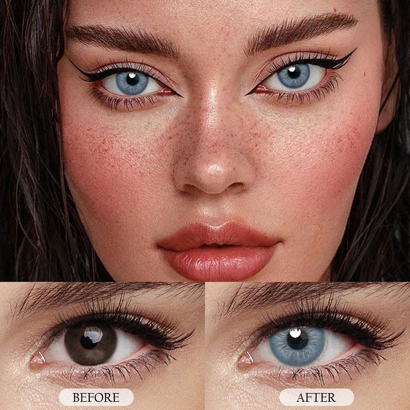 Lentile de contact colorate moi, cu colorare opaca (schimba complet culoarea ochiului), cu doua nuante pe lentila, cu contur pe margine, ambalate in cutii de cate doua, potrivite pentru purtare zilnica / ocazionala (1 an). Aspect natural.